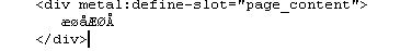 <html metal:define-macro="page"> ... <div metal:define-slot="page_content"> æøåÆØÅ </div> ... </html>