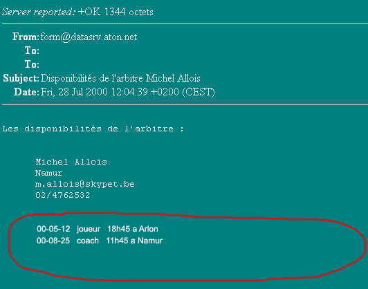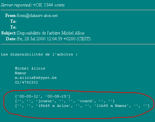Hello everybody, I have a problem, can you tell me if it's possible : I send a form to an e-mail but I receive it brut, and I would like to receive it in a good presentation, you can see that I receive on the attachments with this email on name it "bad_reception" and see what I want on name it "good_reception". I hope that it's possible but if it isn't possible tell me. I thank all of you a lot for all of your help... Vincent.