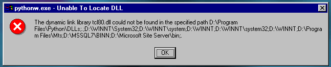 newbie question. when zope starts I get the attached error dialog. Any ideas how I can fix this since zope is running on a remote server? It seemed to start going wrong after installing a shed-load of products into zope. cheers tom ps. to go into greater detail... ...I have two copies of Python...one in Zope's "lib" folder, and another in "Program files". Do I "need" both? Are they getting their PYTHONPATHs mixed up? Ideally I'd like just one Python, but with the IDLE editor AND the Windows extensions (ODBC),is this possible and how would I do it. Can I add IDLE and ODBC to zope's python without breaking zope.